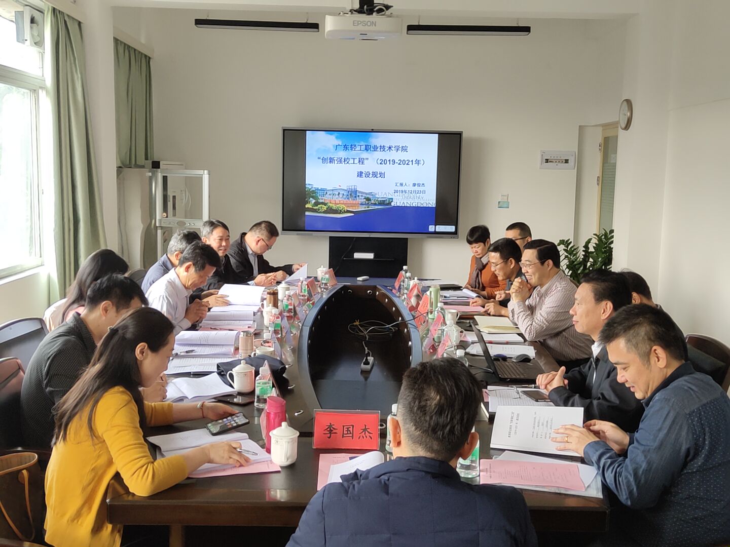 12月23日,我校在办公楼三楼会议室召开《广东轻工职业技术学院“创新强校工程”(2019-2021年)建设规划》(以下简称《规划》)专家论证会。校长卢坤建出席,副校长廖俊杰对《规划》主要内容做了简要汇报。