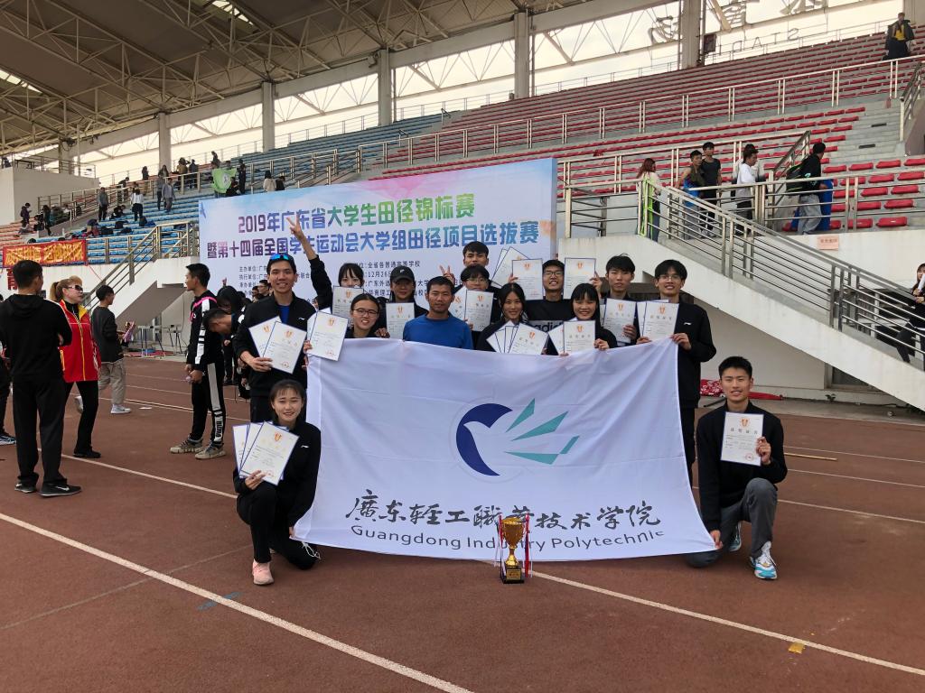 2019广东省大学生田径锦标赛12月26至29日在广州举行。我校田径队在领队杜少辉,教练员邓万先林鹏的带领下顽强拼搏,最终获得4金3银2铜的好成绩。