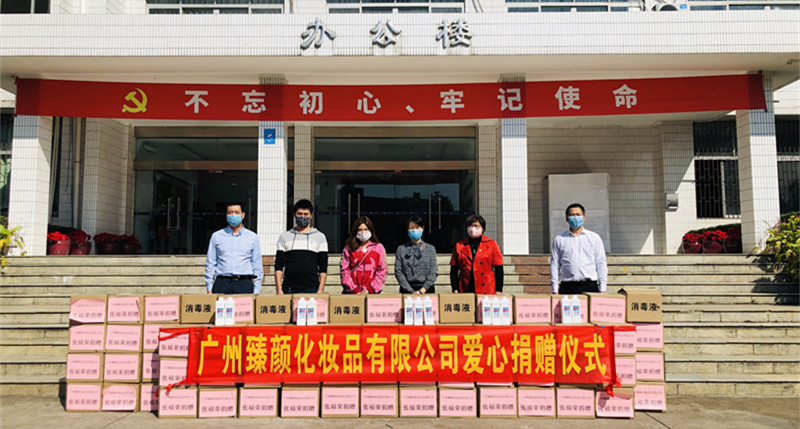 2月24日上午,广州臻颜化妆品有限公司向学校捐赠了大量抗疫物资,受董事长张福荣先生委托,人力行政经理陈静代表公司向学校捐赠100箱(合计1200L)84消毒液,副校长王玫瑰代表学校接受捐赠。