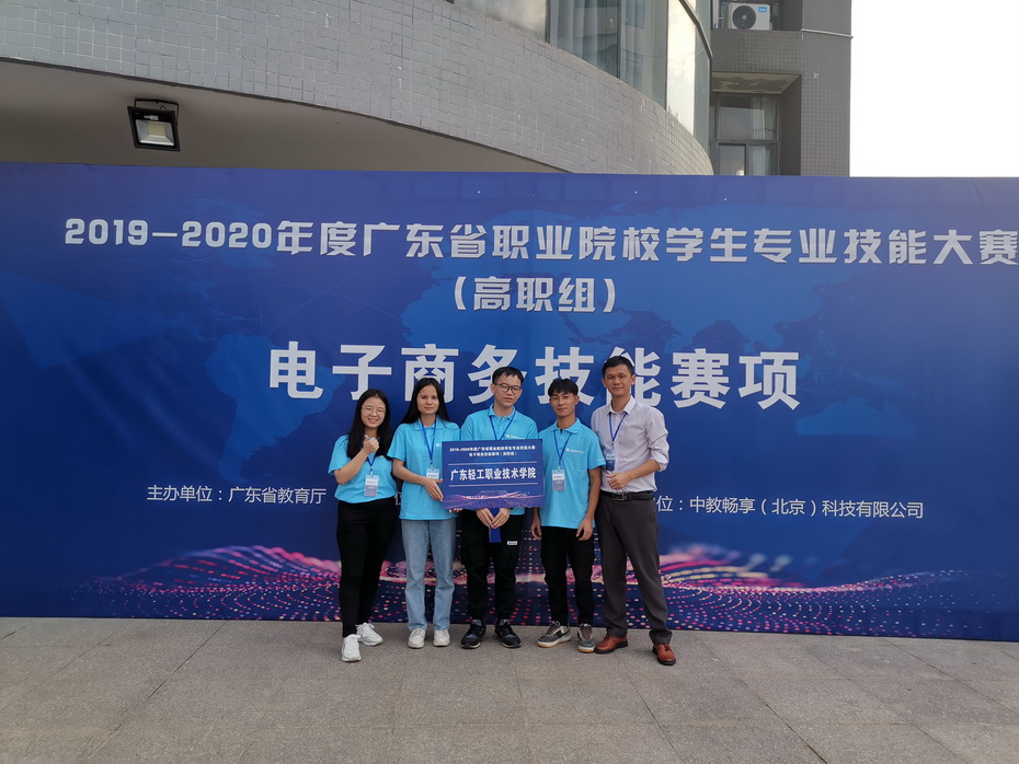 10月10-11日,由广东省教育厅主办的“2019-2020年度广东省职业院校学生专业技能大赛(高职组)电子商务技能赛项”在珠海举行,全省66所高职院校66支参赛队经过激烈角逐分出胜负。我校财贸学院电商181班王小兰、吴燕清、陈晓坤和电商183班杨建新等同学展示了良好的对抗技能和竞技状态,最终荣获大赛二等奖。