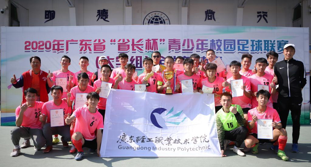 11月28日,2020年广东省“省长杯”青少年校园足球(大学组)全省总决赛在广州圆满落幕,我校足球队在领队体育部主任杜少辉,教练梁松尚、罗健华老师的带领下勇夺男子丙B组冠军。本届比赛由广东省教育厅和广东省体育局联合主办,全省共有85所高校派出了112支球队参赛,在25天的时间里将进行264场比赛。