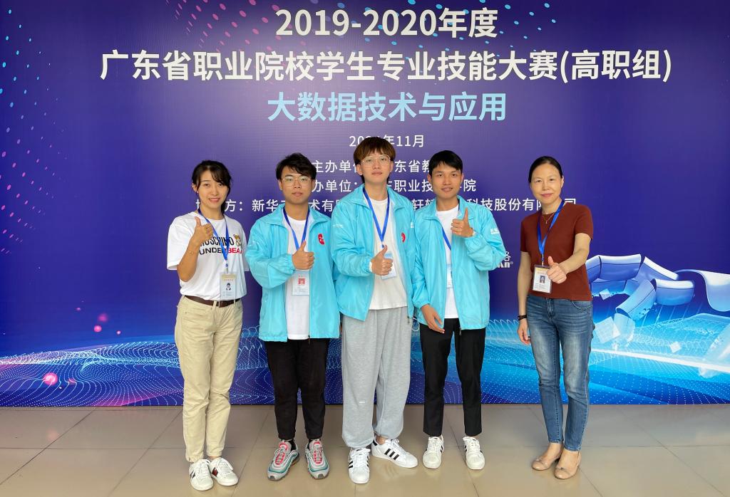 11月20日至21日,广东省教育厅主办的2019-2020年度广东省高等职业院校“大数据技术与应用”技能大赛在佛山举行。由王珊珊和古凌岚两位老师指导的软件171林志峰、曾晋国,软件181简文杨三位同学出色地完成赛项各项考验,在全省49支队伍中取得了总分排名第二的好成绩并荣获大赛一等奖。