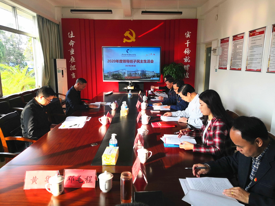 2月3日,按照省纪委、省委组织部的部署安排,学校党委领导班子召开2020年度民主生活会,党委书记杜安国主持会议。广东省委教育工作领导小组办公室秘书处处长邵允振、二级主任科员田利阳同志到会指导。