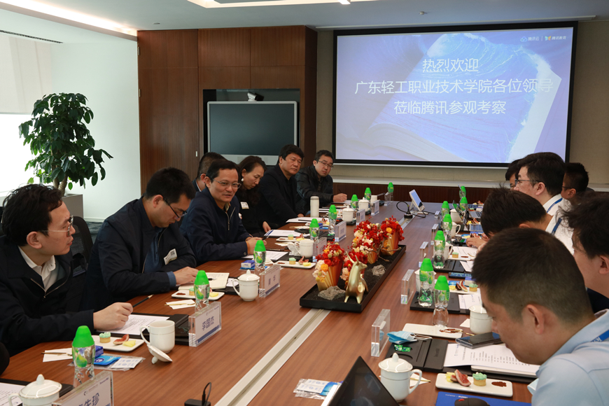 3月5日,党委书记杜安国、副校长邓毛程等一行围绕职业教育信息化变革等课题赴腾讯公司开展深入调研。腾讯公司高等教育总经理李峪、腾讯教育南区总经理徐张良、华南区总监陈小亮等参加洽谈。