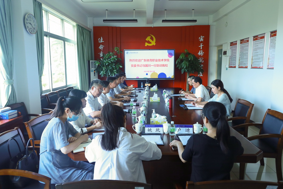 杜安国介绍了我校办学历史和近年来在党建思政工作、高质量发展方面的主要成效,马国川、徐佶分别介绍了广东体育职业技术学院的党建和办学情况,双方就开展党建思政等多项工作的交流援助进行了探讨。