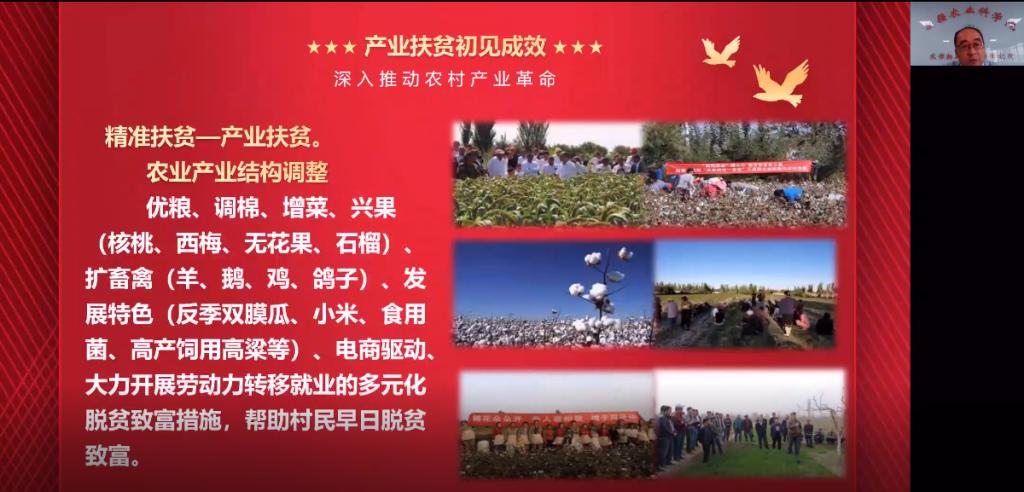 徐麟作了题为《决胜脱贫攻坚 书写时代答卷》的精彩报告,讲述了自己在库木西力克村四年的驻村生活故事。他用图文并茂的方式,生动讲述了自参加新疆维吾尔自治区“访惠聚”工作以来,与库木西力克村的乡亲们脱贫致富的艰苦历程。徐麟及团队成员在库木西力克村改造道路,祛除陋习,发展特色产业,开创“六个一”庭院经济新模式,并与我校财贸学院、轻化工学院等专业团队开展电商扶贫,送智扶志,攻坚克难,一步一个脚印带领村民们走上致富之路。经过四年的努力,如今库木西力克村已经形成产业扶贫、就业扶贫、电商扶贫、消费扶贫的精准扶贫模式,他说:“脱贫攻坚是没有硝烟的战场,广大党员干部以热血赴使命、以行动践诺言,汇聚起我们打赢脱贫攻坚的强大力量。”徐麟用自身经历,向大家分享了他坚定信仰、担当作为、服务群众、无私奉献的精神风貌以及恪尽职守走好新时代长征路的奋斗征程。