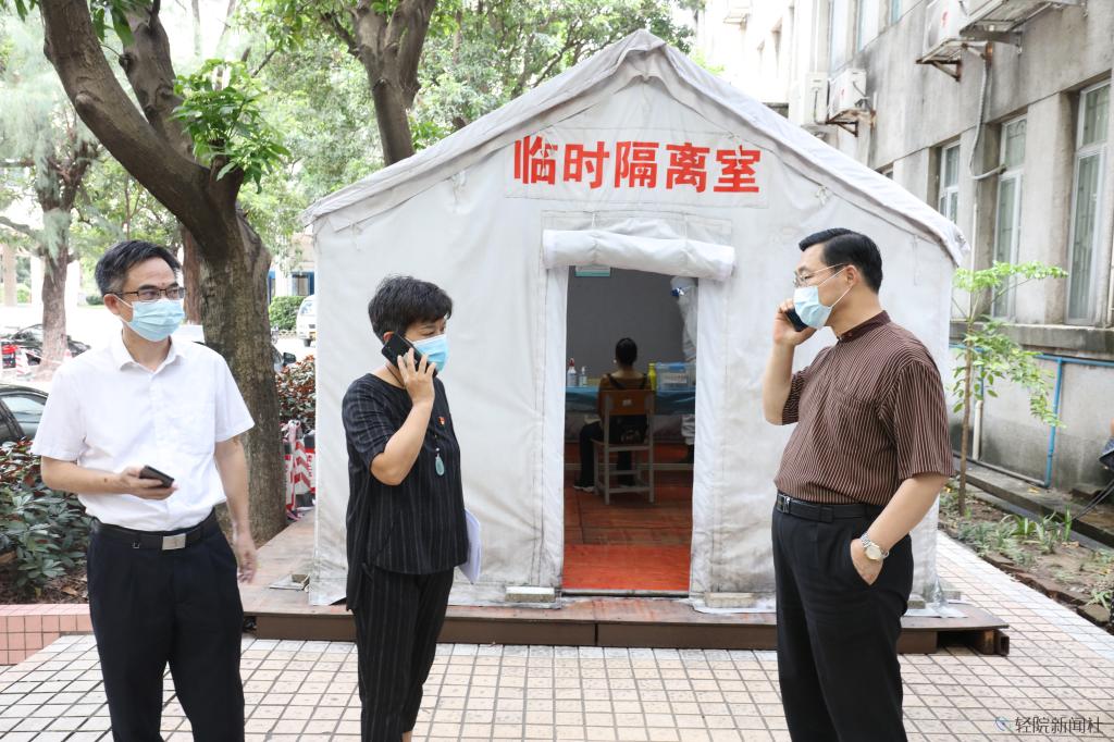 根据上级有关秋季开学和疫情防控部署要求,为切实做好秋季开学准备工作,保障师生身体健康和生命安全,8月24日上午,学校在广州新港校区进行了学生返校疫情防控演练。校长卢坤建、副校长李荣,学校疫情防控工作领导小组、医务室、保卫处及师生代表参加演练。新港街道办、社区卫生服务中心工作小组在现场观摩指导。