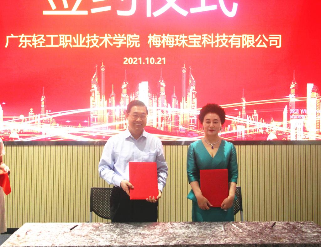 10月21日,广州梅梅珠宝科技有限公司与我校校企合作签约仪式在广州校区国际数字创意谷举行。我校校长卢坤建,广州梅梅珠宝科技公司董事长、拉威儿艺术珠宝品牌创始人梅梅女士分别代表校企双方签约。副校长邓毛程出席仪式。
