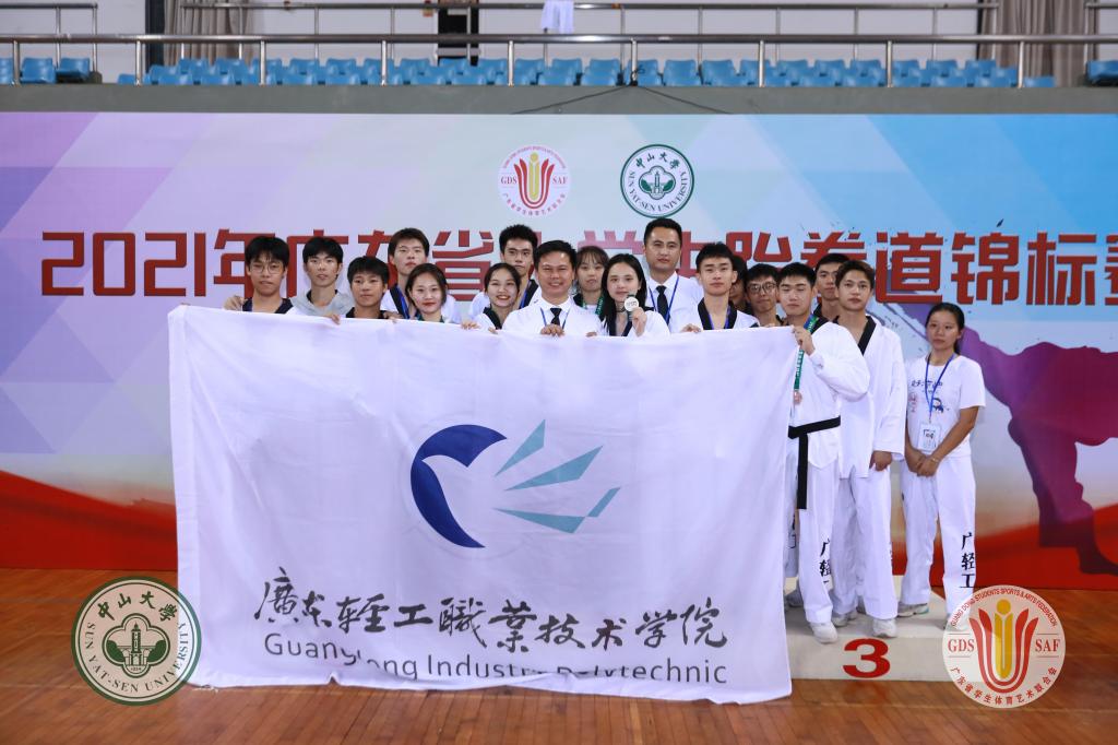 在广东省教育厅指导、广东省学生体育艺术联合会主办的2021年广东省大学生跆拳道锦标赛中,我校跆拳道队在领队体育部主任杜少辉,教练员陈清华、刘宁老师的带领下获得2金3银2铜及团体总分一等奖,是建立校队以来参加省级以上比赛最好成绩。本次比赛,共吸引来自全省各地市共54所高校67支队伍参加,参赛人数832人。