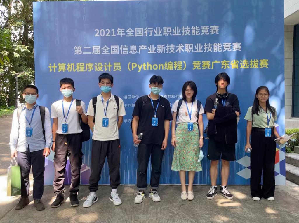 我校信息技术学院人工智能技术教研室谢钰宁老师带队参加第二届全国信息产业新技术职业技能竞赛计算机程序员(Python编程)竞赛广东省选拔赛。本次比赛分为职工组和院校学生组,智能212杨三泰、智能201陈清城获二等奖,智能201何日瑜、智能201任小龙获三等奖,谢钰宁老师参加职工组比赛获三等奖,指导老师为谢钰宁、谢峰、车书、罗茂权、梁才志。