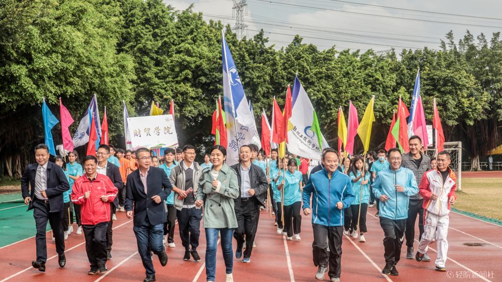 2021学校体育文化节暨第61届田径运动会于11月18日上午在南海校区拉开帷幕,学校党委副书记梁艳珍,副校长廖俊杰、李荣、邓毛程、梅建波,各二级学院、职能部门、中职部负责人出席开幕式,廖俊杰致开幕词,梁艳珍宣布学校第61届田径运动会开幕。