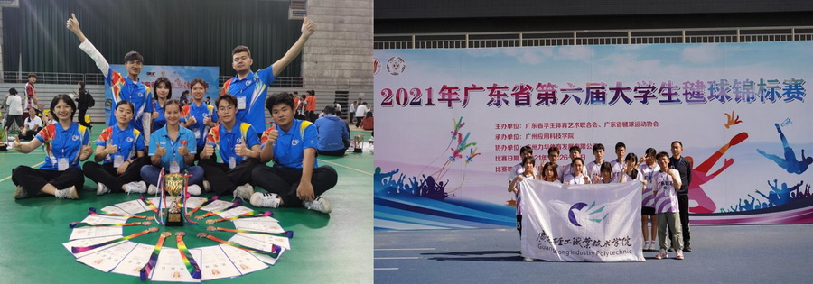同日,为期三天的2021年广东省第六届大学生毽球锦标赛于肇庆落幕。本赛事由广东省学生体育联合会、广东省毽球协会主办,全省来自各地23所高校340多名运动员、领队及教练员参加。我校毽球队在领队体育部主任杜少辉,教练员张沛锋、胡志老师的带领下获得丙组团体总分第二名。其中,关华霖(电气194)、陈浩东(机电206)、冯梓楹(空乘212)、方红友(环设202)、陈杰婷(园林201)获得了丙组男女混合平推组第三名,冯梓楹(空乘212)获得女子单人计数赛第三名。张沛锋、胡志老师获 “优秀教练员”称号。(图/文 体育部 陈丽霞 张沛锋 张红雷 穆海斌)