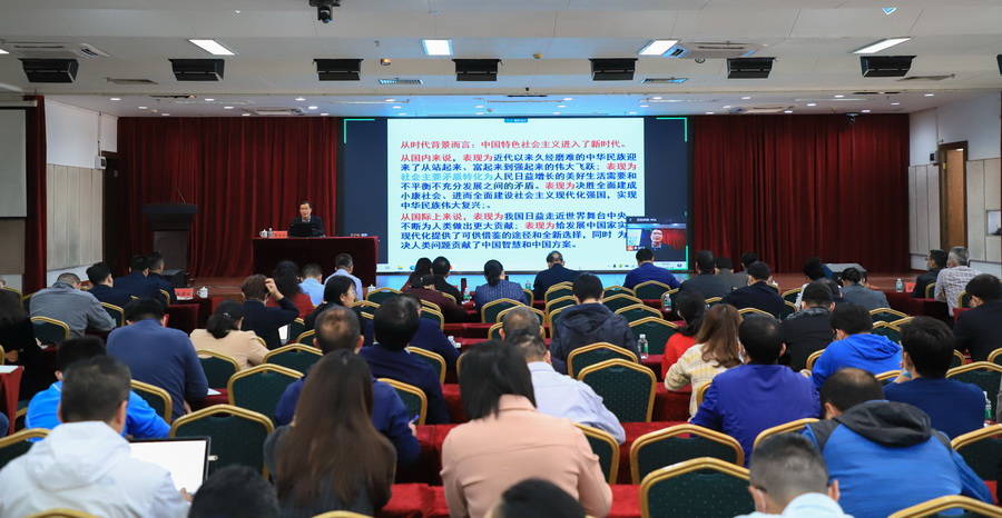 为深入学习宣传贯彻党的十九届六中全会精神,学校于12月14日下午在新港校区召开党委理论中心组学习扩大会议,邀请省委教育工委宣讲团成员、华南理工大学马克思主义学院教授莫岳云宣讲党的十九届六中全会精神。全体校领导,副科级以上党员干部,党总支委员、党支部书记、师生代表等2400多人分别在四个校区线上线下参加会议。