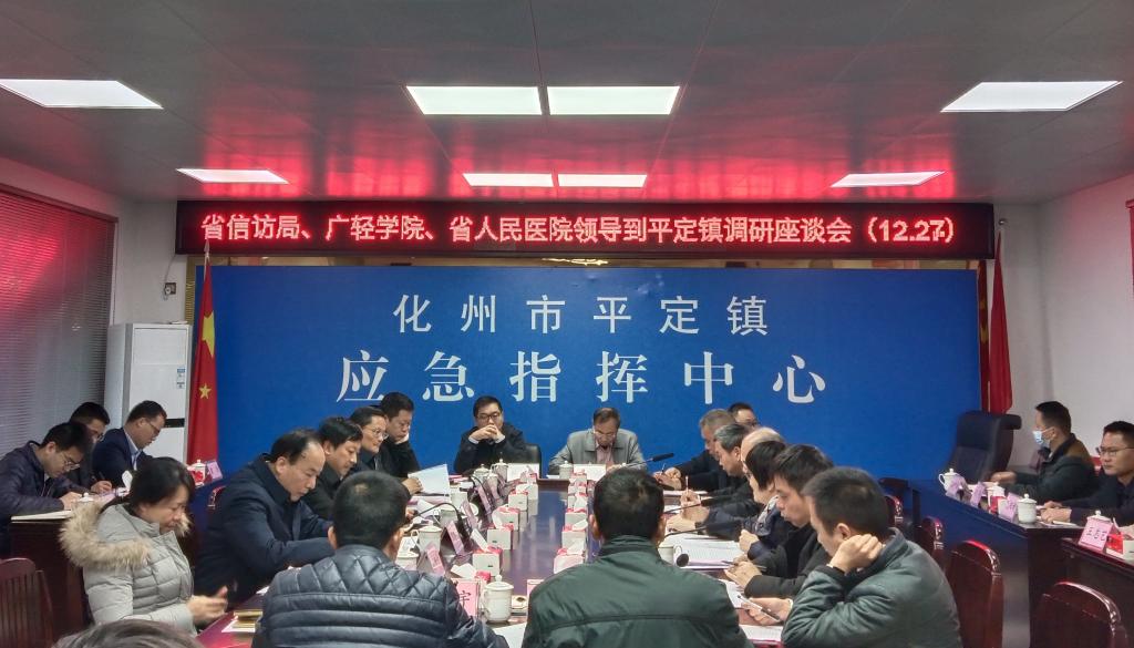 12月27日-28日,广东省乡村振兴驻平定镇帮镇扶村工作队的三个组团单位领导率队齐赴化州市平定镇调研,共同谋划乡村振兴美好未来,推动帮镇扶村工作。广东省人民政府副秘书长、信访局局长许典辉,我校党委书记杜安国,广东省人民医院副院长卢永刚带队参加调研,组团单位、茂名市、化州市、平定镇及驻镇工作队有关领导陪同调研。
