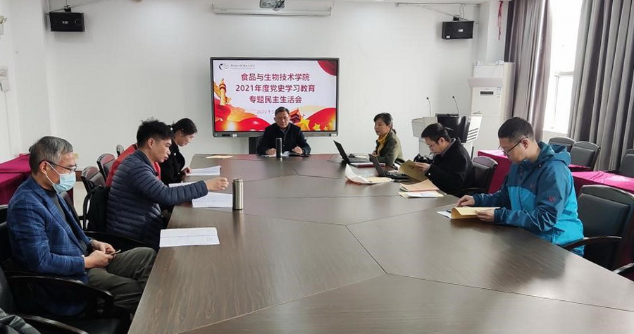 1月20日,食品与生物技术学院在新港校区第二工业实训楼908召开了2021年度党史学习教育专题民主生活会。学校党委副书记、纪委书记朱其祥出席了会议。食品学院领导班子成员、教研室主任、副主任、党总支委员、党支部书记参加了会议。