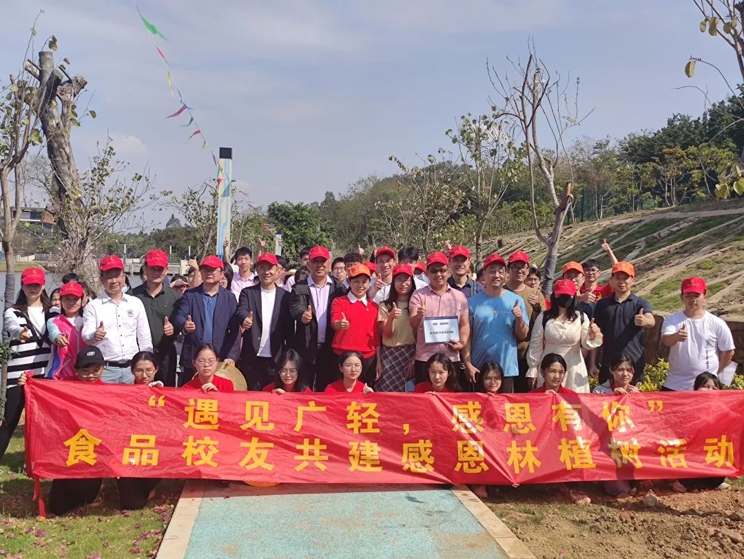 在2021年10月,食品学院就发起了校友感恩林捐赠倡议活动。3月12日,食品与生物技术学院汇聚校友在南海校区举行“遇见广轻 感恩有你”共建感恩林植树活动。副校级领导张国铭,食品学院原党总支书记揭广川,食品学院党总支书记周爱芳,校办副主任黄卓晔,以及学校各年级毕业的17位校友共同出席了活动。
