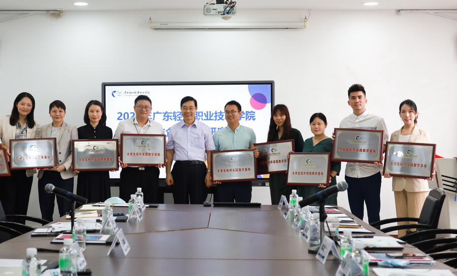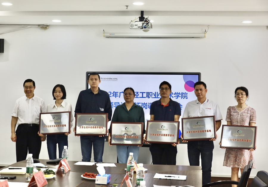 随后,会上举行了大学生校外实践教学基地授牌仪式,卢坤建向9家企业代表进行授牌并合影留念。