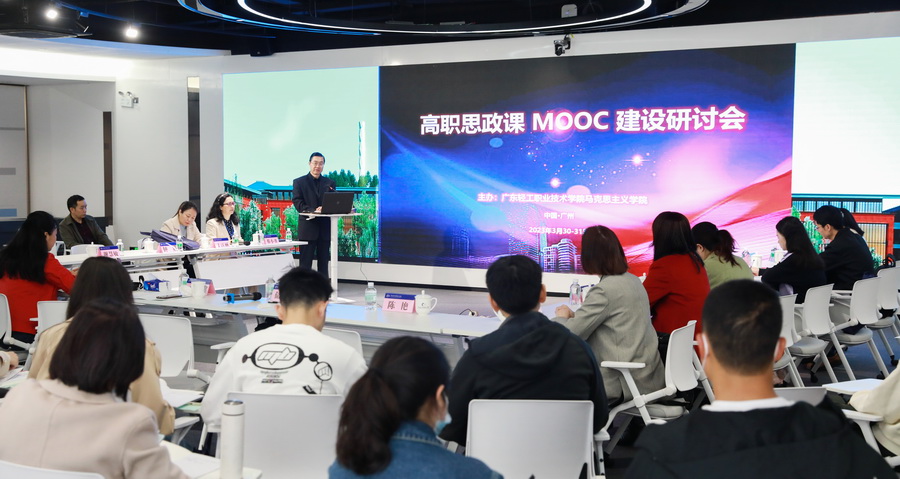 在思想政治理论课MOOC建设交流环节,广西机电职业技术学院马克思主义学院院长黄振宣、广东科贸职业学院马克思主义学院院长李琳和我校马克思主义学院副院长蔡小葵分别作了题为《高职思政课学情的调查发现和实践指向》《潜入“大海”去“养鱼”—我对思政教育慕课创新的理解》《运用MOOC助力思政课教学改革》的报告。