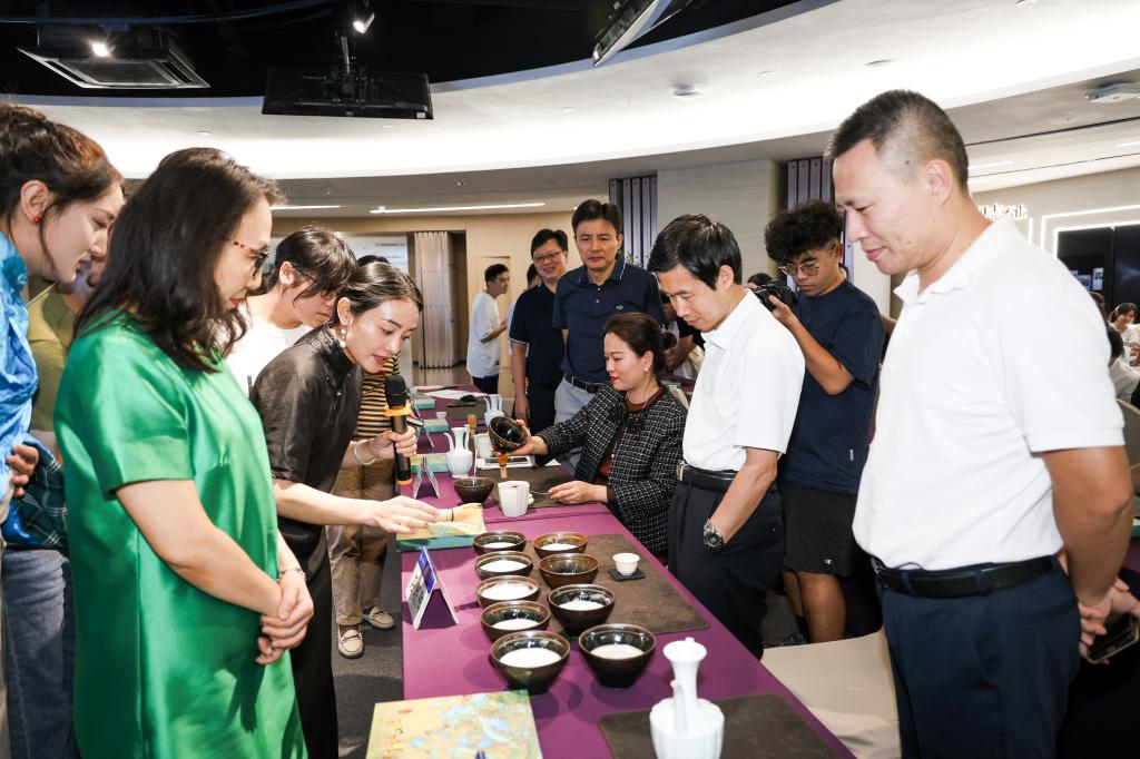 黄建红在活动中现场传授了宋代点茶技艺,详细介绍了它在中国茶文化中的重要地位。参与者还有机会近距离观赏宋代点茶器具,并与黄建红互动“斗茶”,通过实践学习感受中华传统茶道之美。(学生工作部、管理学院)
