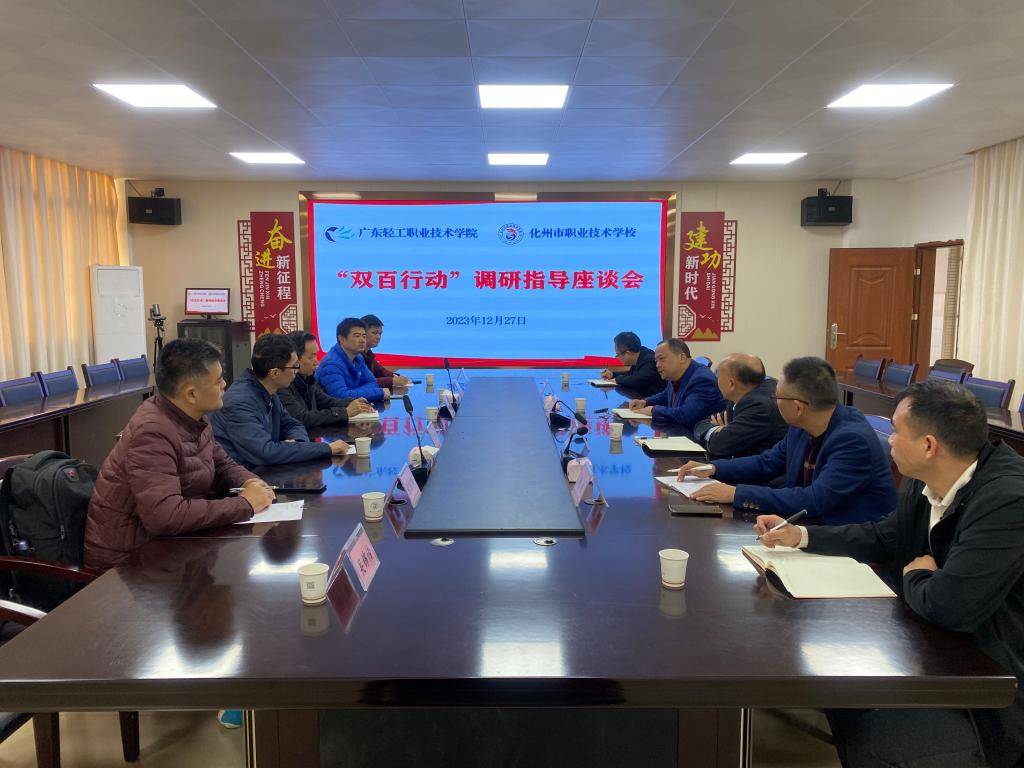 学校的教授团队在化职校领导陪同下,深入学校党建广场、产学研基地、实训车间、心理中心和名校长工作室参观调研,听取该校发展历程与未来规划的详细汇报。座谈会上,两校围绕高水平职业学校建设任务目标,就如何加强内涵建设,凝炼办学特色等方面展开深入且热烈的研讨,并就如何更好地开展好下一步工作形成了共识。专家团团长储水江表示,化州职校经过十年的发展,校园环境和教育教学基础设施建设都有了很大提升,目前已进入省级高水平职校建设的重要阶段,要充分把握好“百千万工程”这一重大时代机遇,锚定高质量发展目标,凝心聚力持续推动内涵建设,争取用3到5年时间建成省内一流的职业学校。