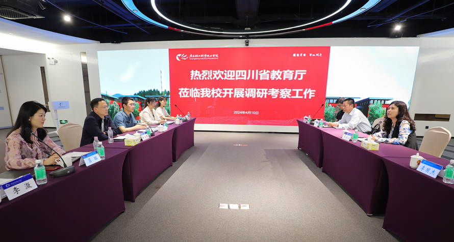 4月10日,四川省教育厅职业教育处四级调研员陈巨东一行6人到我校调研考察。学校党委副书记梁艳珍在新港校区多功能展示中心接待了来访客人。