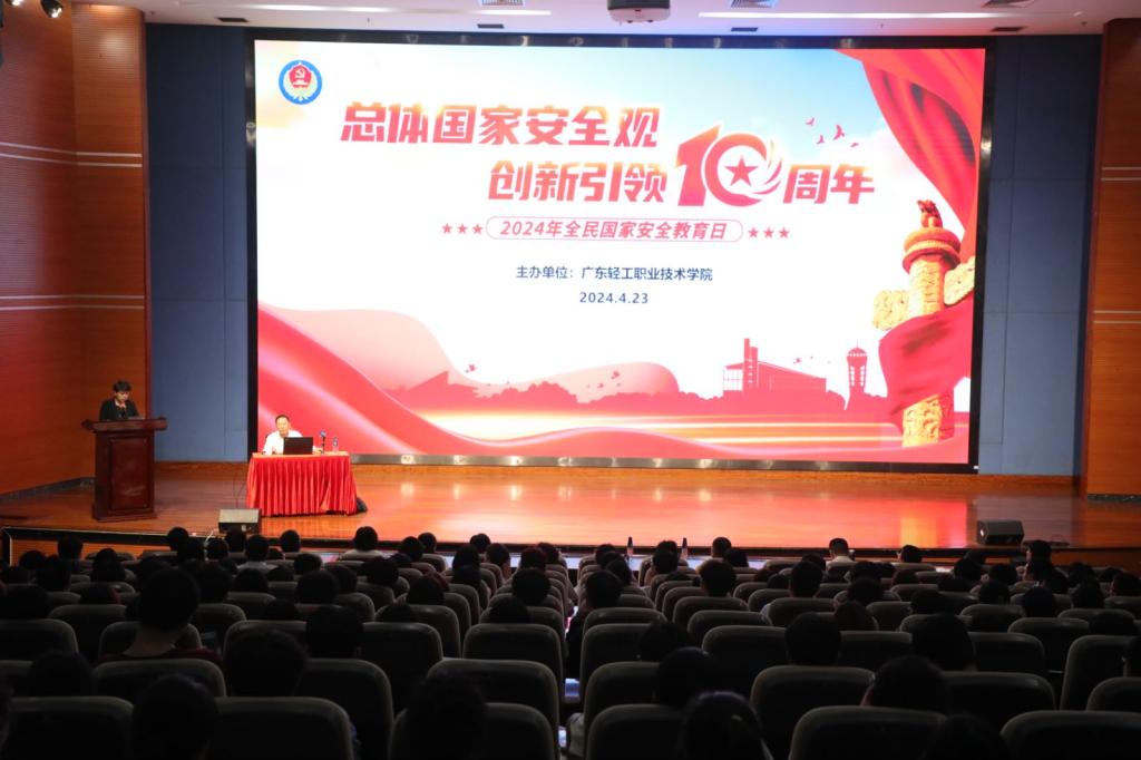 4月15日是第九个全民国家安全教育日。为深入学习贯彻习近平总书记总体国家安全观,切实提高师生国家安全意识,4月23日下午,我校特邀佛山市国家安全局警官来校作国家安全教育日专题讲座。副校长李荣出席,400多名师生代表聆听了讲座。