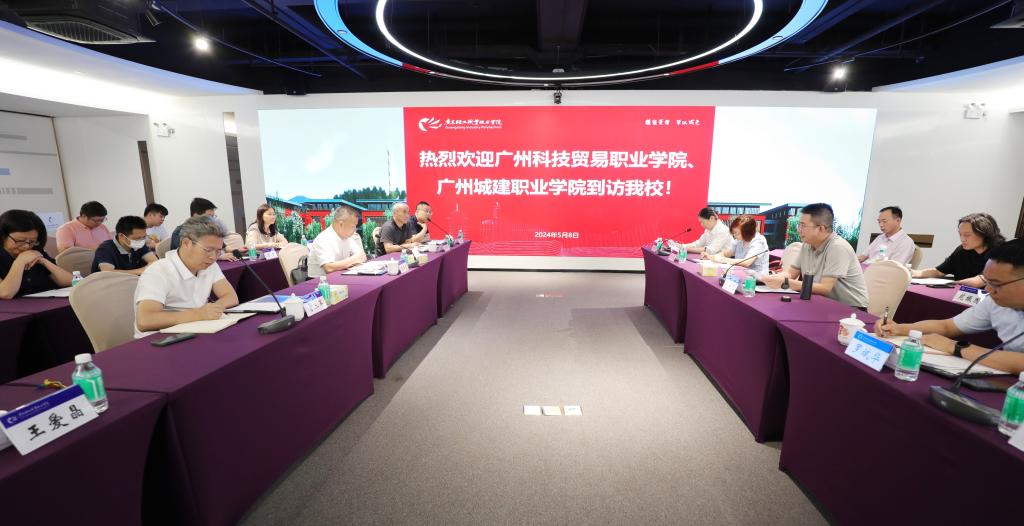 5月8日,广州城建职业学院党委副书记、副校长张德宜一行12人,广州科技贸易职业学院副校长曾三军一行5人到我校交流学习。我校副校长邓毛程在新港校区多功能展示中心接待了来访客人。