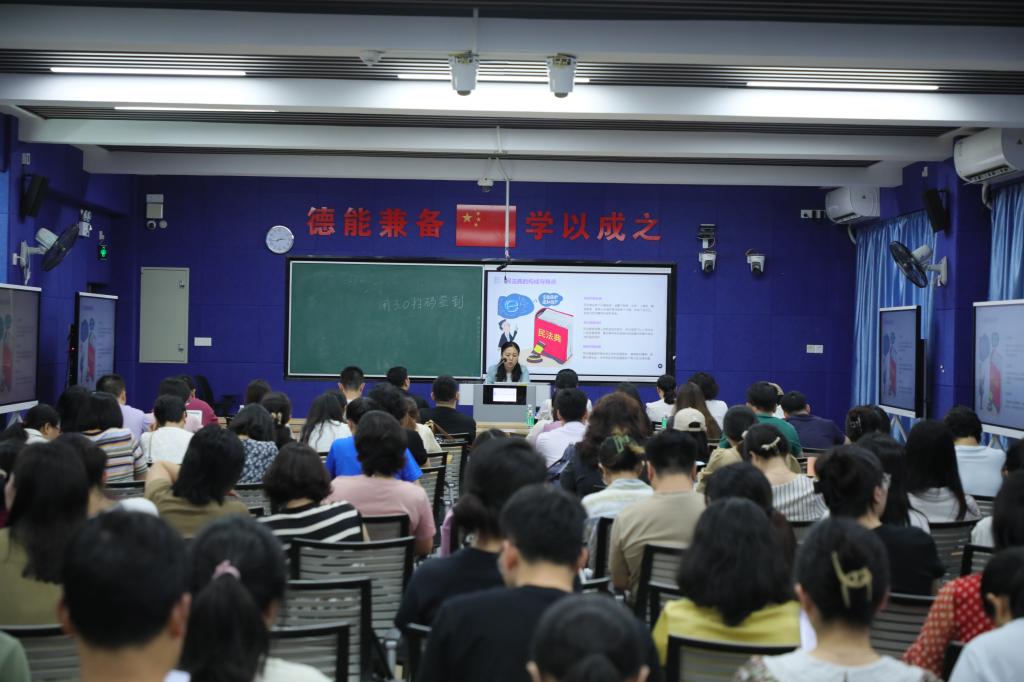 活动先从广东岭南律师事务所王燕莉律师的专题讲座开始。王律师从民法典的编撰历程与意义、主要内容、对公民生活的影响与意义等方面切入,结合民法典颁布后社会关注较多的婚姻家庭、民间借贷与个人信息保护等问题,以案释法、以法论事,给参加讲座的老师和学生敲响安全警钟。
