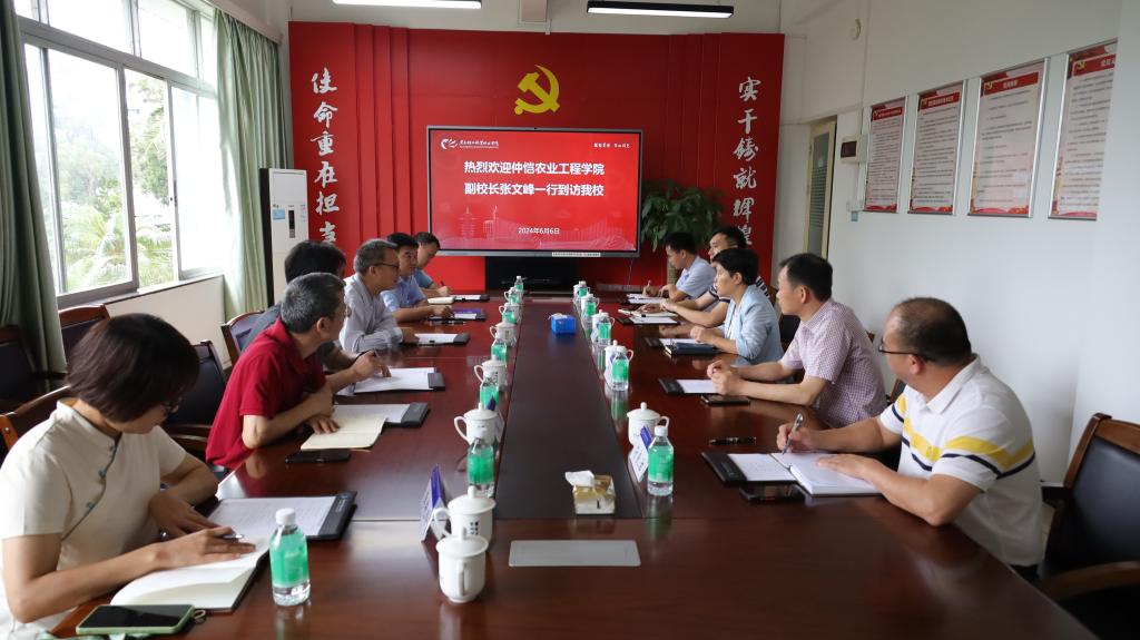 6月6日,仲恺农业工程学院副校长张文峰一行7人到我校交流学习。我校副校长李荣在新港校区办公楼二楼会议室召开座谈会接待来访客人。