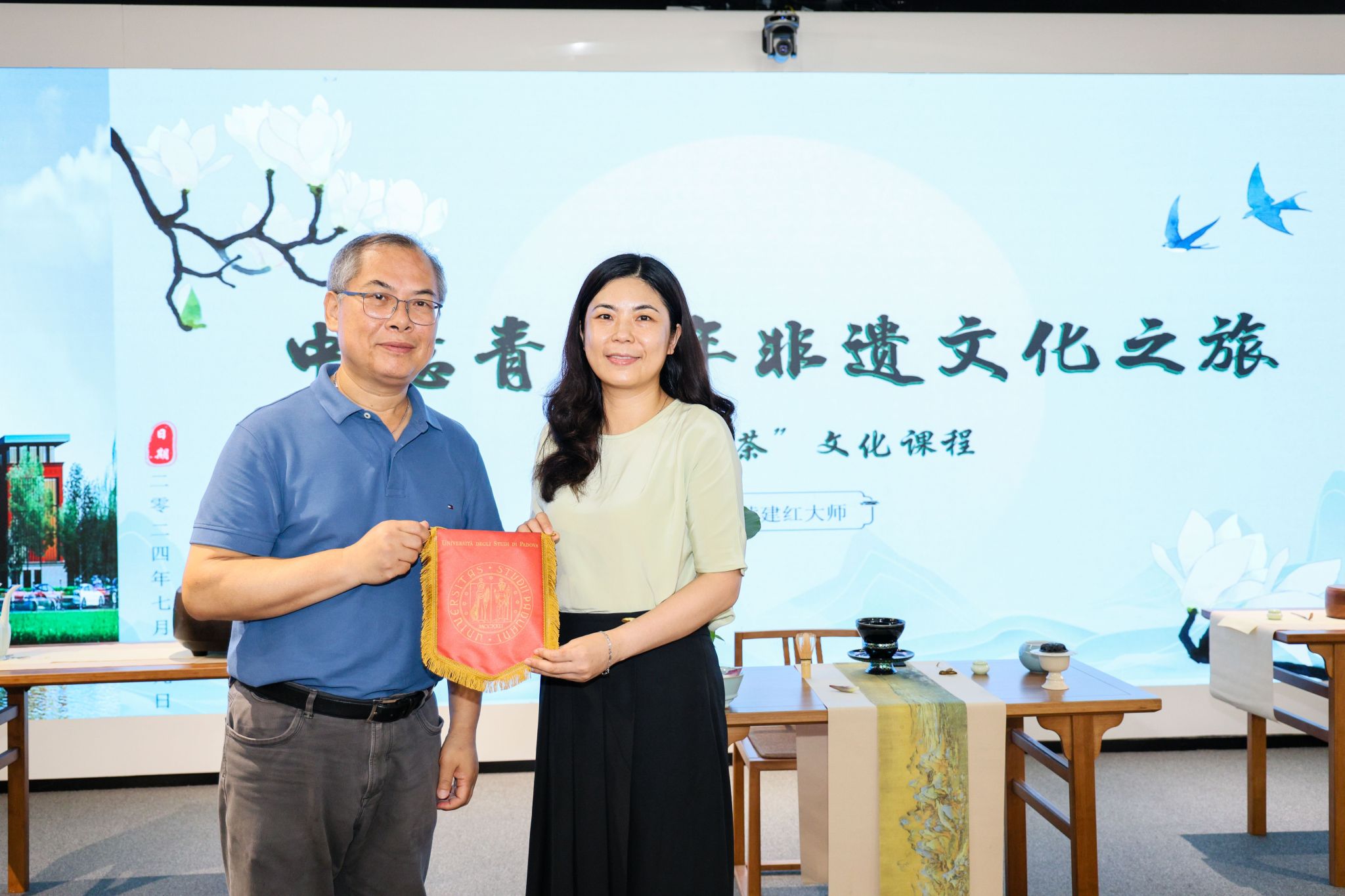 7月19日,我校与意大利帕多瓦大学孔子学院在新港校区多功能展示中心联合举办了“中意青少年非遗文化之旅”系列活动。首场活动聚焦于宋代点茶技艺的体验与交流,学校党委副书记梁艳珍,意大利帕多瓦大学孔子学院中方院长杨海斌,以及荔湾区党群服务中心林劲梅主任等领导出席。