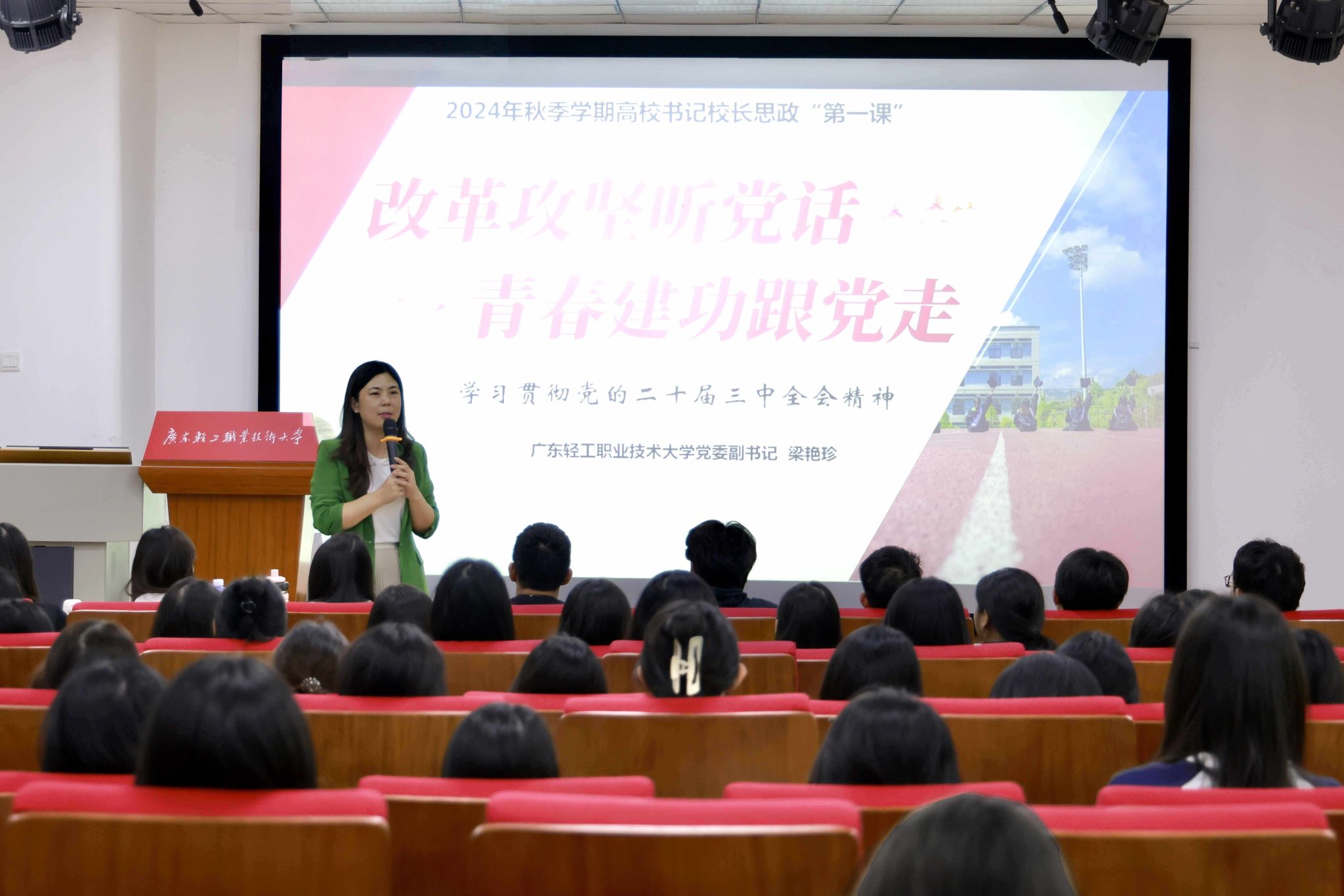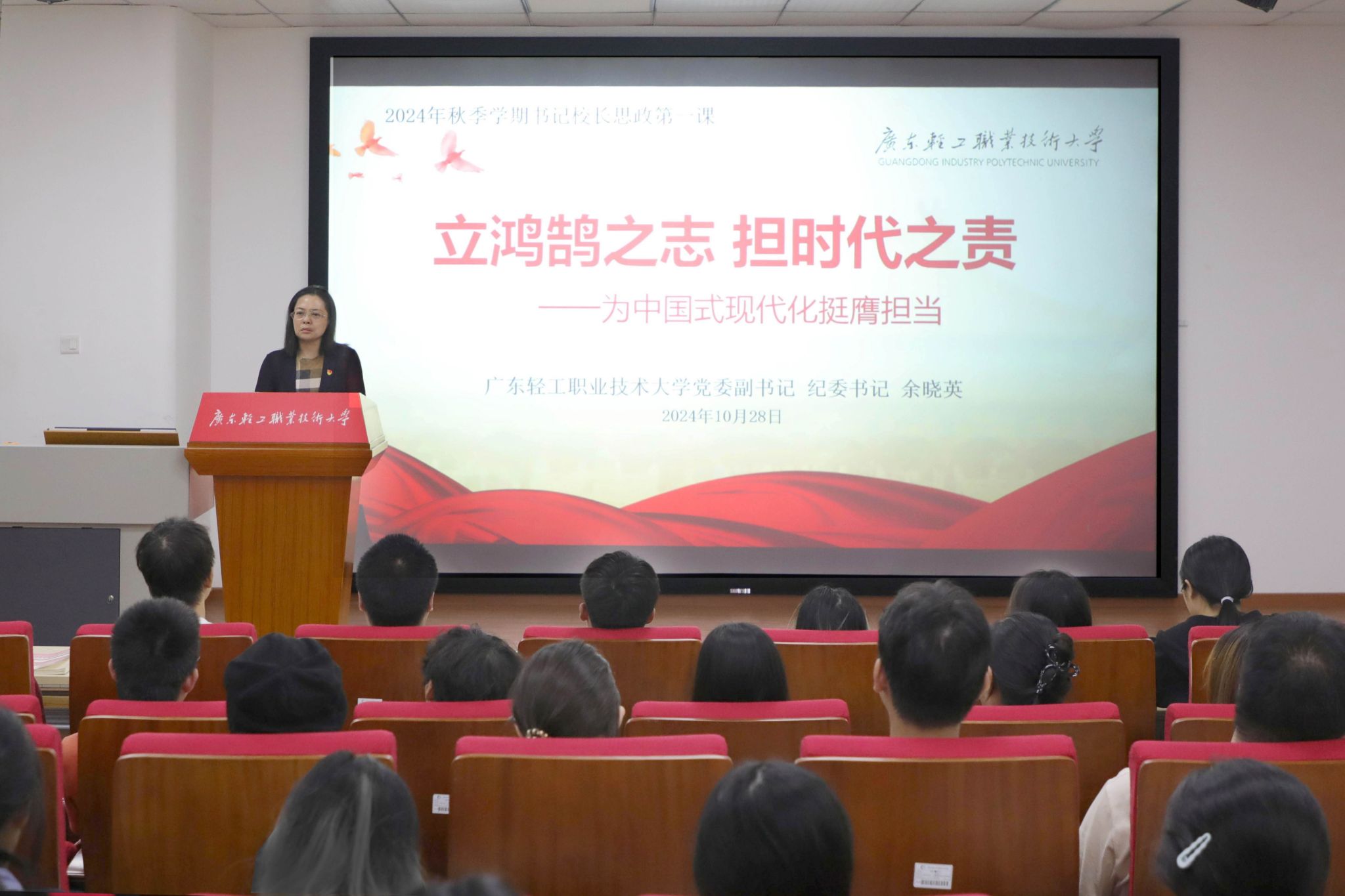 近日,学校党委副书记、纪委书记余晓英,党委副书记梁艳珍,副校长廖俊杰、李荣分别在新港、南海两校区走进学生课堂,为同学们讲授了2024学年秋季学期“思政第一课”。