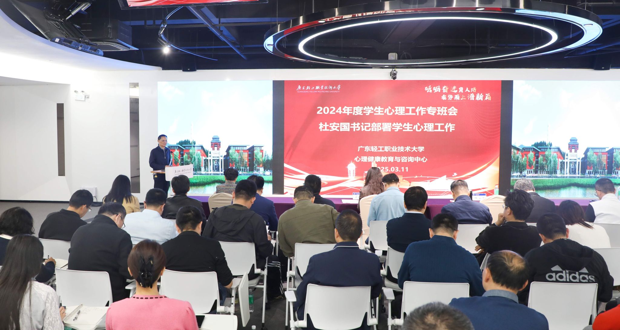 会议由学生工作部主任杨伟柱主持,心理中心主任王玉洁做了2024年度心理健康教育工作总结报告。保卫部、学生工作部、中职教育部等部门的有关负责人,以及各二级学院党委(党总支)书记、院长、分管学生工作副书记(副院长)、心理工作辅导员,中职教育部二级心理辅导站站长,心理中心全体人员(含中职教育部)参会。(文/心理中心 图/广轻大融媒体中心)