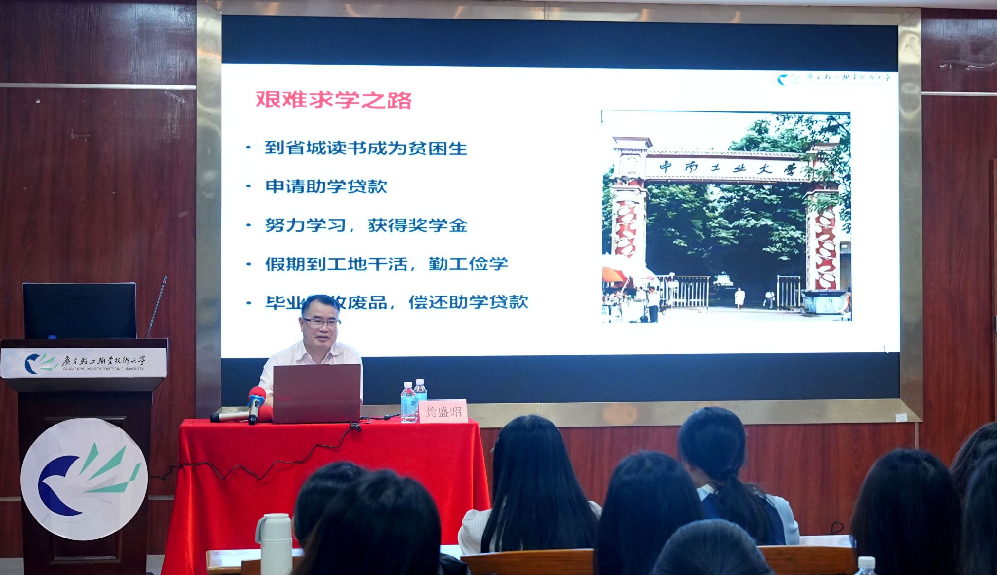 6月12日,由学生工作部主办的“劳模工匠进校园”第17期活动在南海校区南区2号楼报告厅举行。国家级教学名师、广东省劳动模范、轻化工技术学院教授龚盛昭受邀为师生作题为《从贫困大学生到国家级教学名师》的专题讲座。