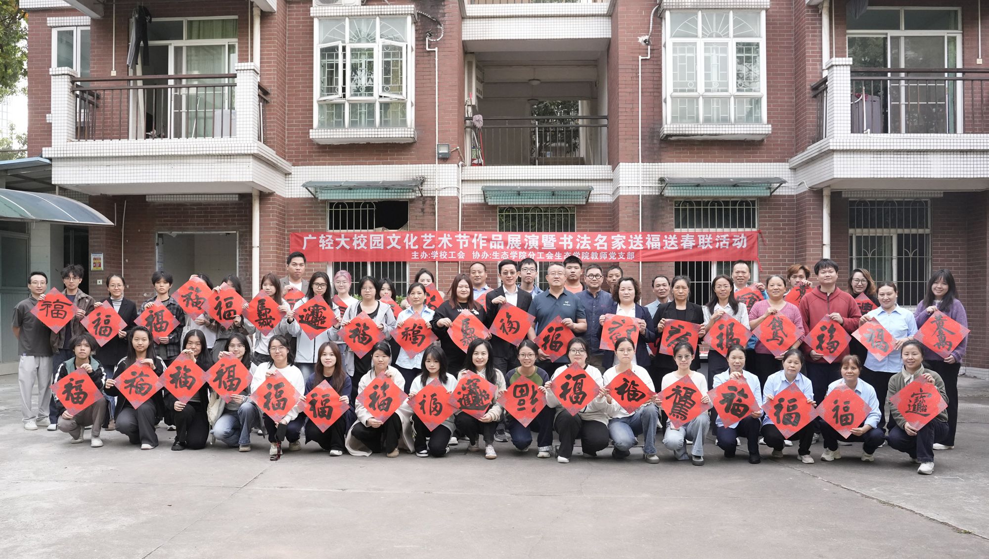 12月23日上午,由学校工会主办、生态环境技术学院分工会与教师党支部协办的校园文化艺术节南海校区展演暨书法名家送福送春联活动在南海校区教师公寓5号楼一楼举行。活动特别邀请广州市白云区书法家协会理事、我校校友艺术设计学院旅游品062杨建华,生态环境技术学院环工173班廖鑫尧、材料学院高分子222黄浩生等爱好书法的校友现场挥毫,为教职工书写福字与春联。