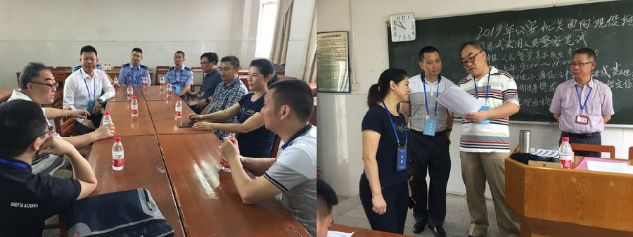 受广东省人事考试局委托,我校6月16日在广州校区组织了“2019年公安机关面向现役转改学员考试录用人民警察笔试”和“公安特勤部门2019年度考录人民警察笔试”公务员考试,参考人数为743人。人力资源社会保障部人事考试中心处长闫德胜, 广东省人事考试局局长王报山、副局长何志强到校指导考务工作,广东公安厅特勤局政治部主任谢育颖、副主任贺宁等对考场进行了巡查。副校长李丽在继续教育学院院长陆英杰、党总支书记李先陪同下接待了前来指导的上级领导。