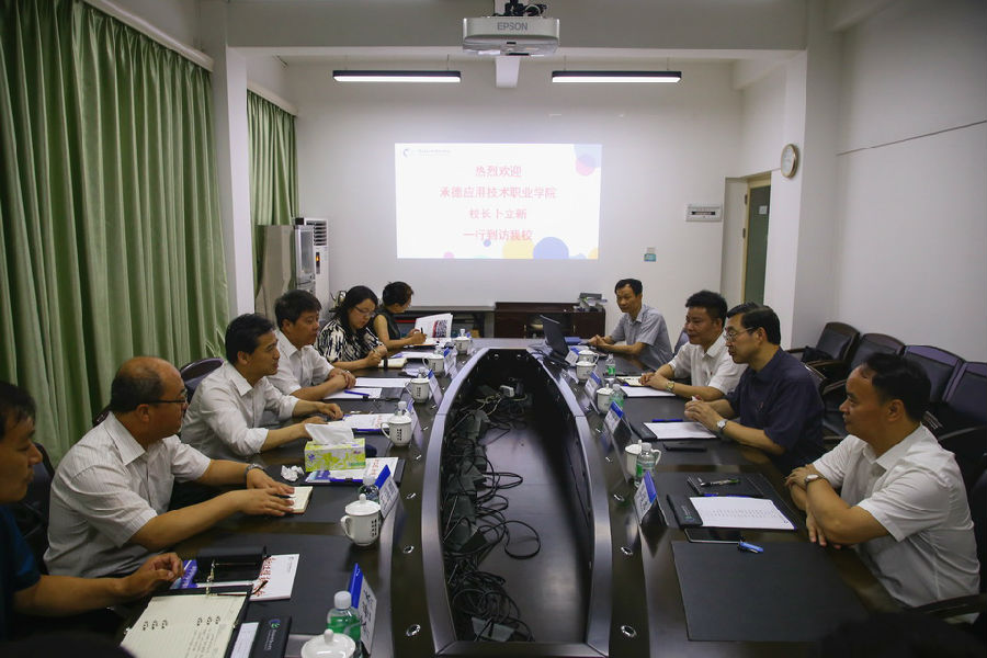 6月24日上午,承德应用技术职业学院校长卜立新一行18人到访我校,学校校长卢坤建、副校长廖俊杰在广州校区接待了来访客人。