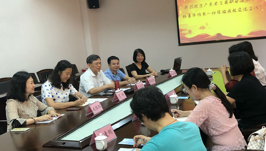 2019年6月4日上午,广东农工商职业技术学院图书馆馆长林春华等一行6人来我校南海校区图书馆参观交流。我校党委副书记朱其祥、图书馆馆长廖志浩及各部门主任接待了各位同行。