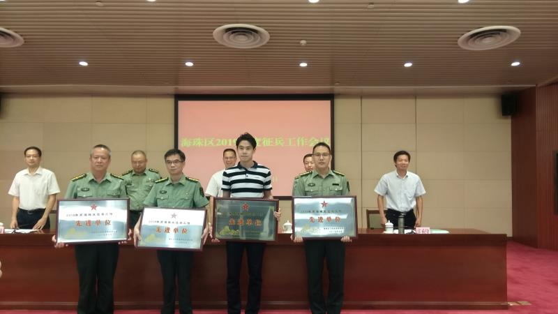 我校征兵工作成绩突出,荣获2018年度海珠区征兵工作先进单位,受到大会表彰。(武装部)