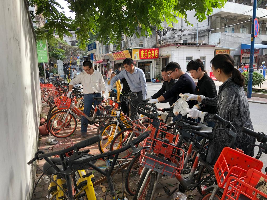 为深入推进“不忘初心、牢记使命”主题教育,发挥党员先锋模范作用,根据学校主题教育活动的部署,10月31日下午,纪审招财党支部组织党员同志到康乐中约北后街开展志愿服务活动——轻扶共享单车。