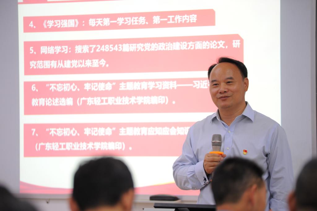 廖俊杰以“以党的政治建设为指引,深入开展教育教学改革”为题,结合自身学习和调研情况,分享了学习的主要内容和学习心得,并从学习材料和重点学习内容,党的政治建设的重要意义,党的政治建设的内涵要求,理论指导学校“双高”建设,调研发现问题、实践解决问题等五方面深入阐述。