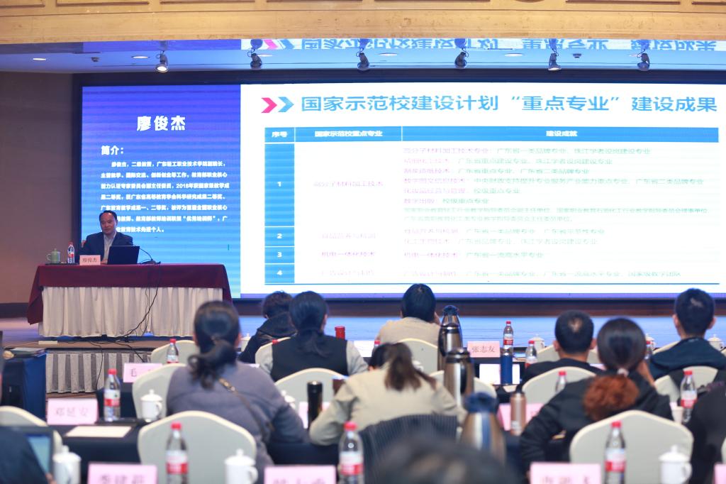 在研修班上,新立项的十六所“双高计划”院校各抒己见,各显特色,全面介绍“双高”建设思路和举措,大家相互启迪,共同探讨,为引领我国高等职业教育高质量发展献智献策。我校副校长廖俊杰作为特邀专家在研讨班上作了“高水平专业群构建思辨”主题报告,廖俊杰以我校精细化工技术高水平专业群构建为例,讲解了专业群构建特征和内涵,展示了我校“双高计划”服务轻工产业发展的不可替代性,受到与会者高度好评。