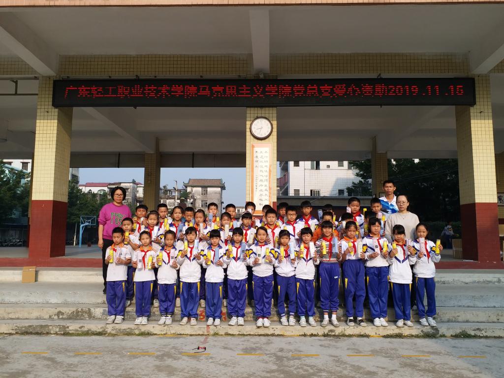 关爱下一代,坚守教育报国初心,肩负立德树人使命,根据马克思主义学院党总支“不忘初心、牢记使命”主题教育“六个一”之“每位党员做一件好事”的活动要求,10月27日——11月15日学院全体党员向江门市新会区大鳌镇大鳌小学献爱心做好事,活动开展期间,全院35名党员踊跃捐资,共捐款2532元,并通过网络平台购买472件学习用品赠与该校学生。