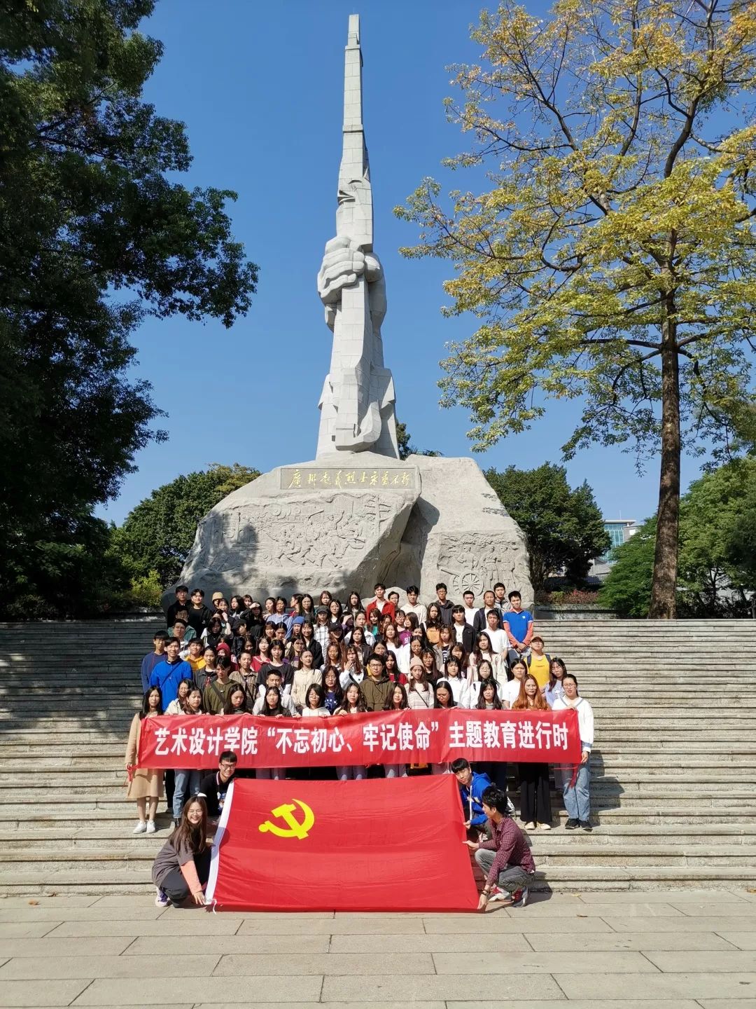 11月19日,在这个秋高气爽,微风徐徐的一天,艺术设计学院学生第二党支部在广州起义烈士陵园开展了革命传统教育和爱国主义教育。活动由支部书记李沅泽、纪检委员王志江带队,18级全体发展对象和积极分子以及党建工作坊共100余人参加。