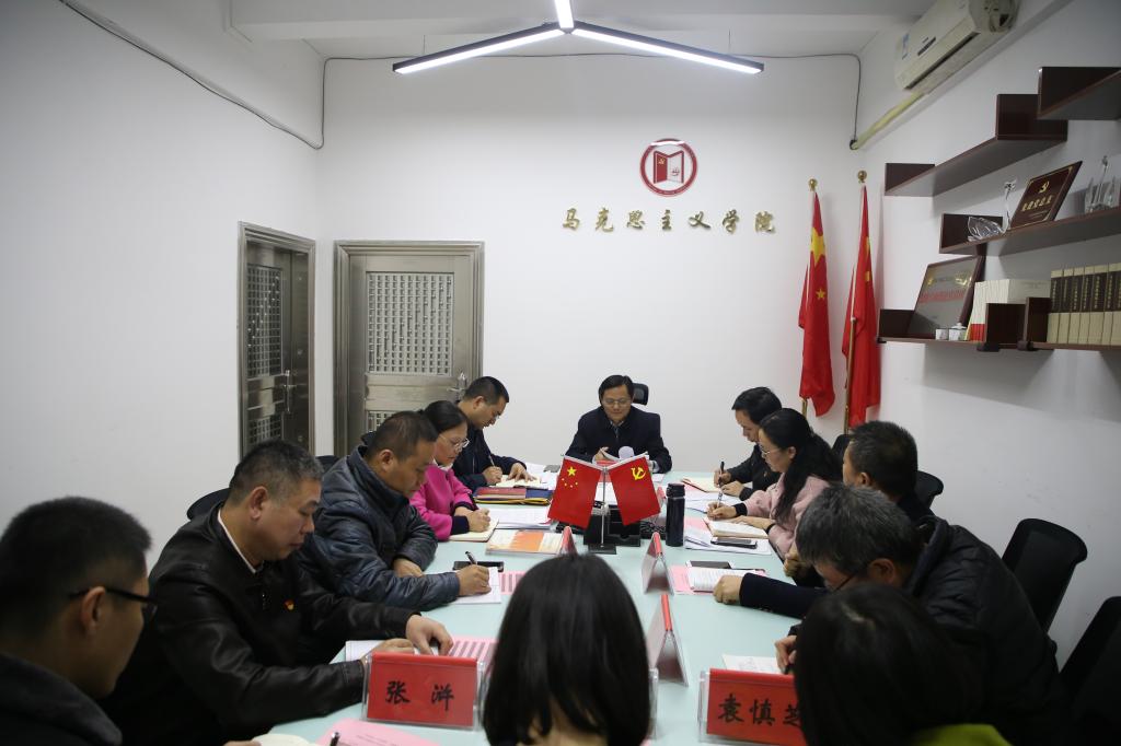 12月9日,根据省委主题教育领导小组《关于印发<广东省开展第二批“不忘初心、牢记使命”主题教育工作安排>的通知》和学校党委的要求,马克思主义学院领导班子民主生活会在第一实训楼207会议室召开。校党委书记杜安国出席指导,宣传部(统战部)部负责人列席了会议,会议由学院党总支副书记余展洪主持。