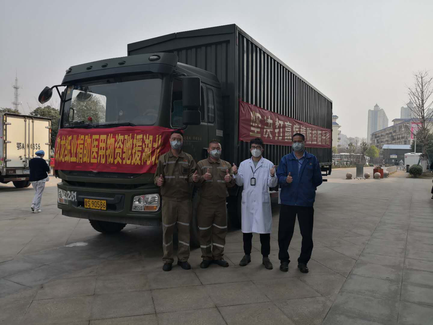 新冠肺炎疫情发生以来,全国人民同心协力、守望相助、共克时艰。在此次抗“疫”中,我校优秀合作企业玖龙纸业为分担国内物流压力,从东莞基地运输部专门抽调了两辆翼展货车,由4名司机和2名领队成立了“捐助物资驰援湖北运输队”,力争第一时间将捐赠的医疗物资运往湖北,而负责本次运输任务的其中一位领队,便是来自我校造纸专业071班的优秀毕业生——张渊。