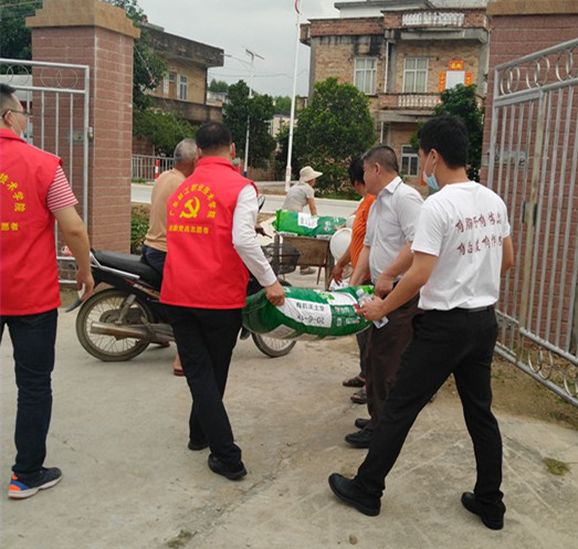受新冠肺炎疫情影响,农村外出务工、春耕备种面临不小的困难,精准扶贫工作面临新挑战,为坚定不移落实党中央决策部署,助力学校做好疫情防控与精准扶贫工作,巩固好我校对口扶贫成果,3月26日,我校后勤党总支联合服务我校餐饮企业广州上善餐饮企业管理有限公司到对口扶贫点廉江市营仔镇云峡村开展抗疫助农精准扶贫系列活动。营仔镇镇长林荣强、我校驻村第一书记林海雄、后勤管理处处长杨华江、广州上善餐饮企业管理有限公司总经理孙志钦及后勤总支党员代表和村委干部等出席了活动。