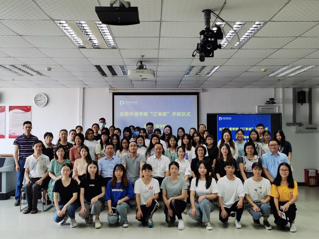 9月3日,应用外语学院“订单班”开班仪式在第二实训楼B803举行。学校副校长廖俊杰、广州卡贝路贸易有限公司常务副总经理黄踵青、人力资源部副总监赵胜芳、上海微创软件股份有限公司高级招聘经理陈枫、招聘主管陈桂琼、学校教务处处长张宝昌、应用外语学院党总支书记景海明等领导、老师及全体订单班学生出席了本次活动,开班仪式由应用外语学院党总支副书记闫卫锋主持。