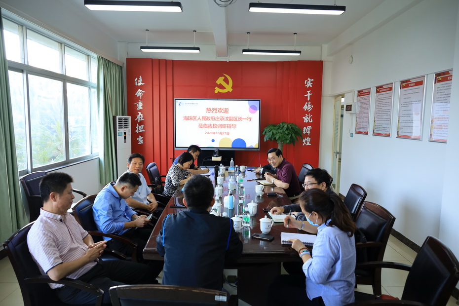 10月21日下午,海珠区副区长庄承汶携海珠区人力资源和社会保障局工作人员一行5人到访我校。我校校长卢坤建、副校长李丽在办公楼二楼会议室进行了热情接待。庄副区长听取了我校管理学院参与海珠区家政联盟及粤菜师傅工程申报的工作进展汇报,对我校社会培训工作主动担当和积极作为表示高度赞赏,并就区政府如何支持项目的顺利实施给予了宝贵的意见和建议,对我校进一步扩大职业培训、促创业保就业存在的障碍进行了政策解析。卢坤建对庄副区长的到来和区政府对高校工作的支持表示感谢,并对下一步教育培训和人力资源和社会保障厅职业资格证书对接工作提出了设想及工作要求,强调了职业技能提升对区域经济发展的促进作用。我校继续教育学院和管理学院的相关负责人参与了洽谈。(文/校长办公室、管理学院 图/宣传部)