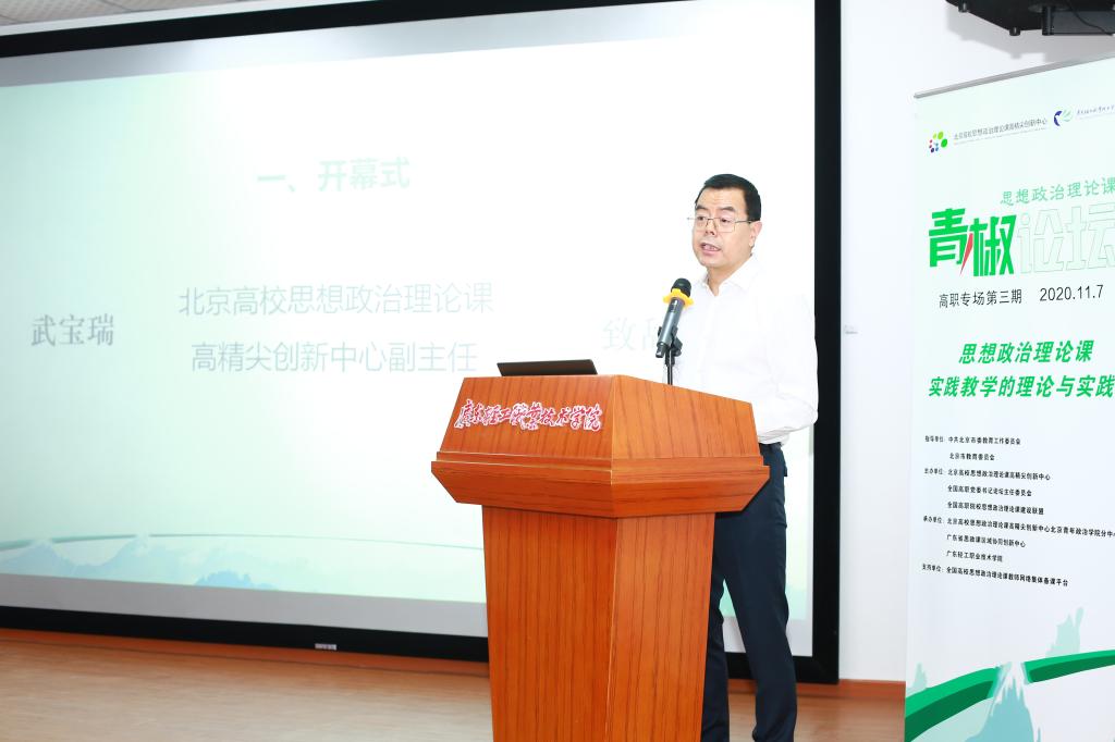 北京高校思想政治理论课高精尖创新中心副主任、中国人民大学教授武宝瑞在开幕词中指出,本次论坛紧紧抓住了思政课教学的关键环节,突出了问题意识,站位高远,准备充分,将在高职高专思政课实践教学的发展中产生重要的影响和有力的推动。