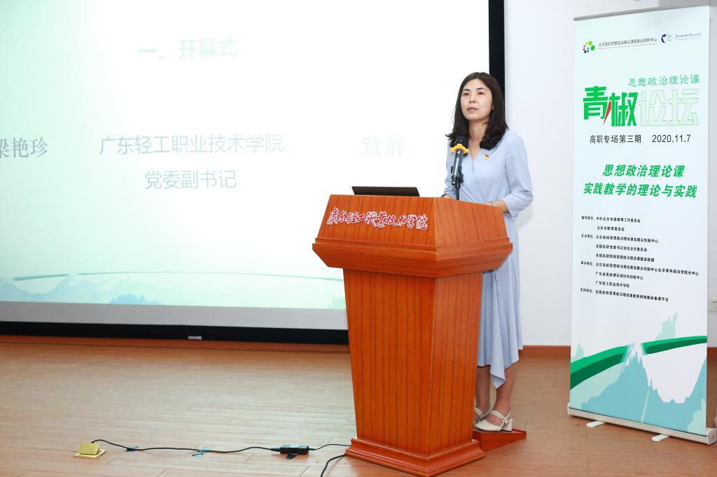 我校党委副书记梁艳珍在致辞中介绍了我校思政课建设和实践教学开展的情况,并指出,此次青椒论坛必将引领、启发广大思政课教师积极探索、实践,促进思政课教师的互动交流,进一步深化思政课改革,推动思政课在线课程建设。